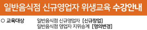 교육대상 : 일반음식점 신규영업자 (신규 창업)